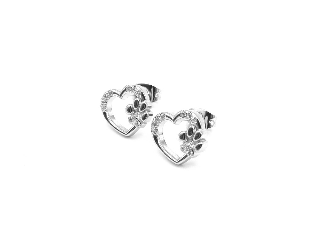 Dámské elegantní náušnice z chirurgické oceli - srdce s tlapkou – jemný detail, který vydrží