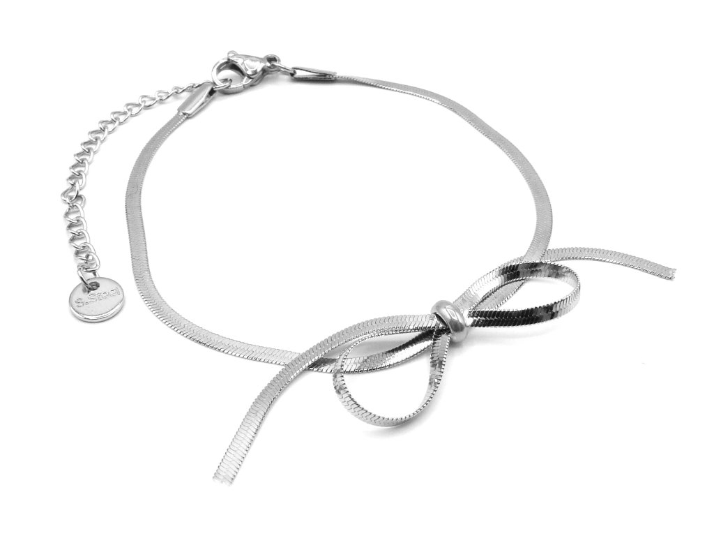Tento dámský náramek s elegantním motivem mašličky z chirurgické oceli je ideální volbou – krásný na pohled, příjemný na nošení a skvělý i pro citlivou pokožku.