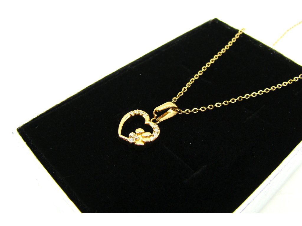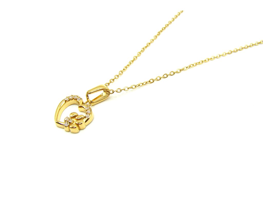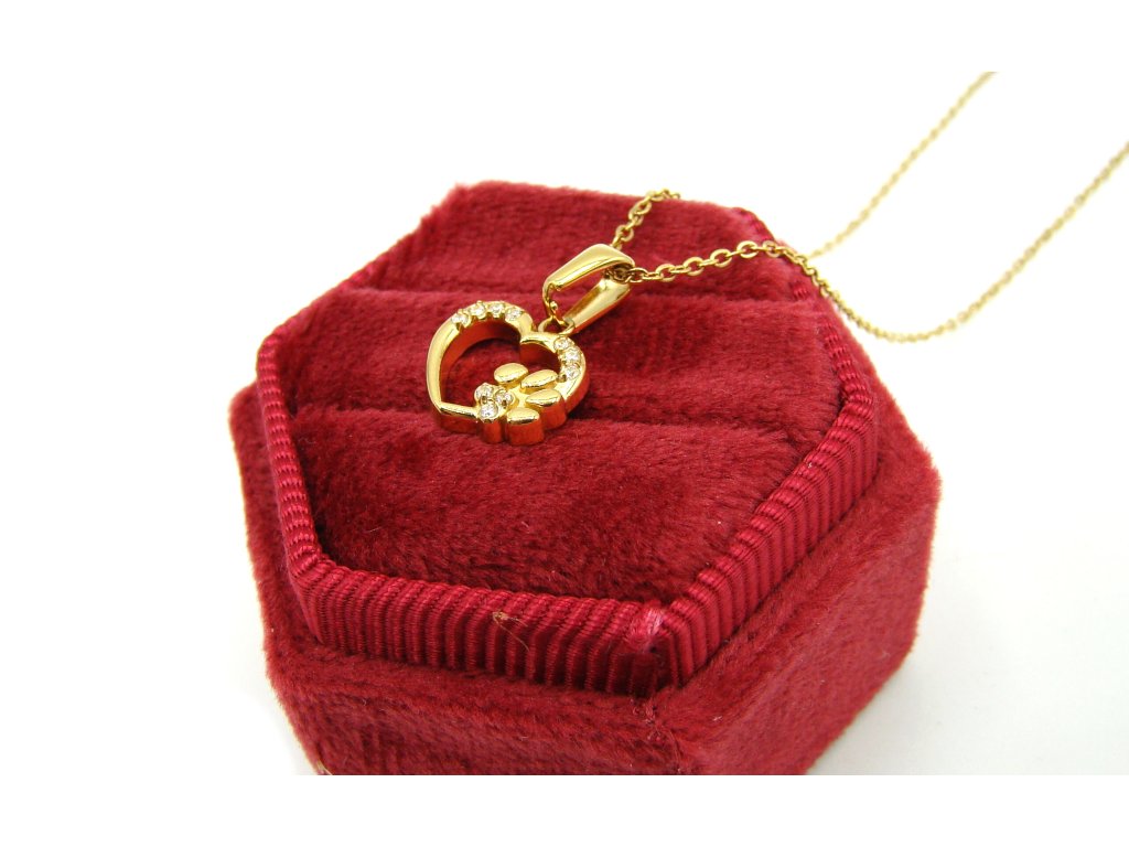 Dámský řetízek náhrdelník srdce s tlapkou z chirurgické oceli - jemný - zlatá variace dárkové balení zdarma
