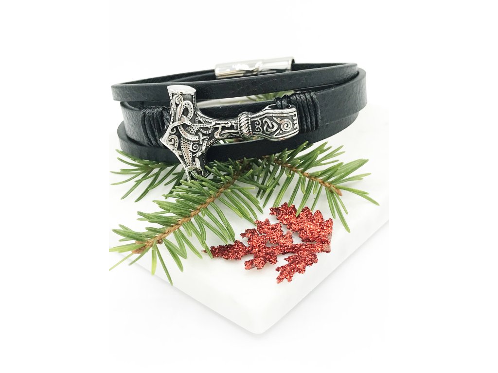 Kožený Náramek THOROVO KLADIVO Černý NR231028 dárkové balení zdarma