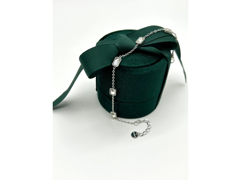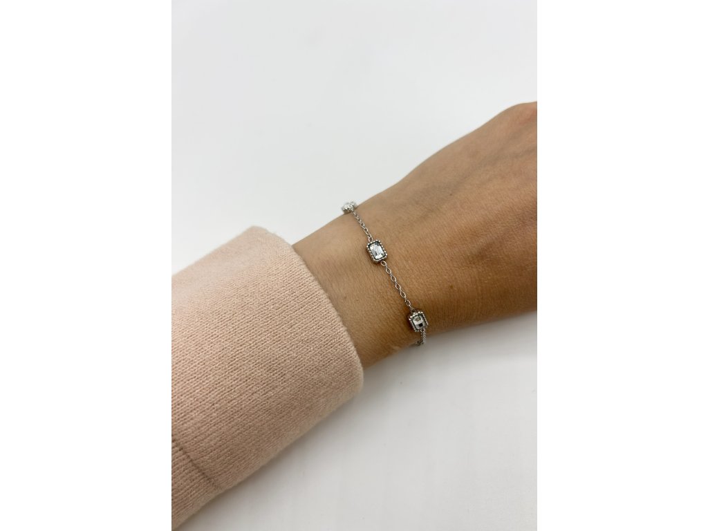 Jemný náramek s bílými krystalky z chirurgické oceli NR231252
