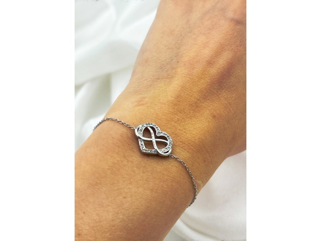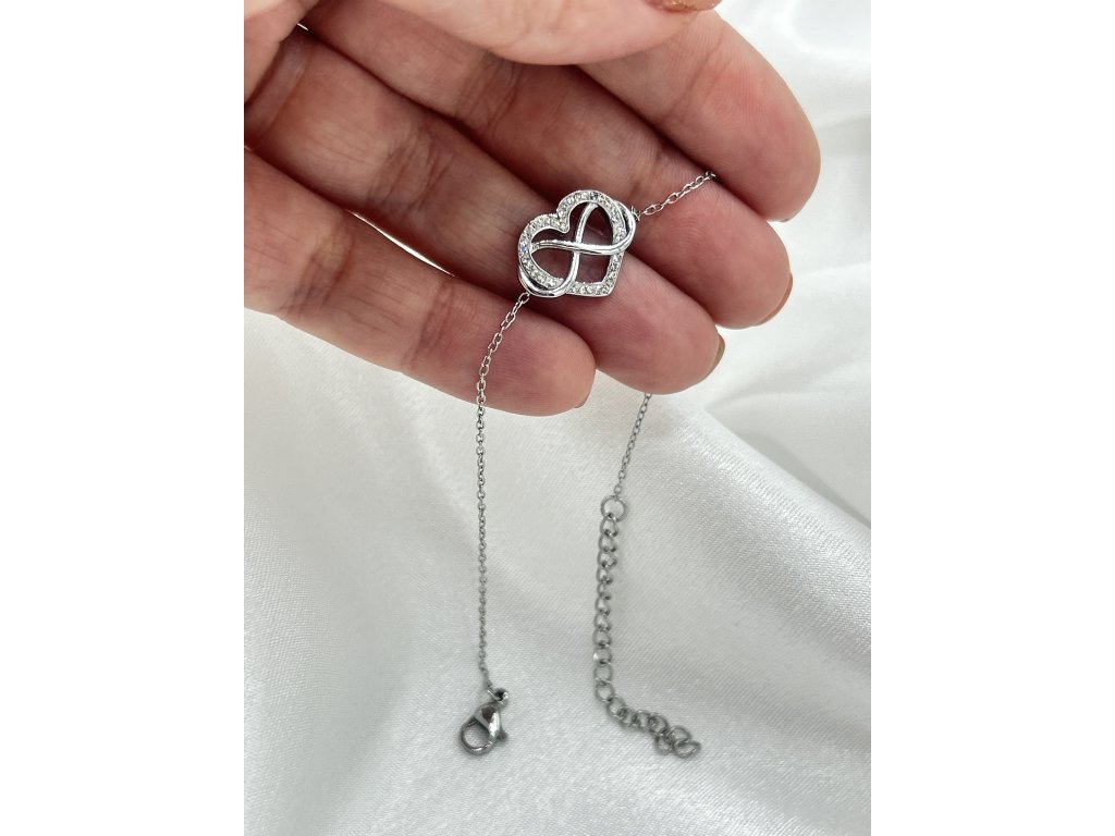 Krásný náramek z chirurgické oceli ve tvaru srdce a nekonečno - nekonečná láska - viz foto.