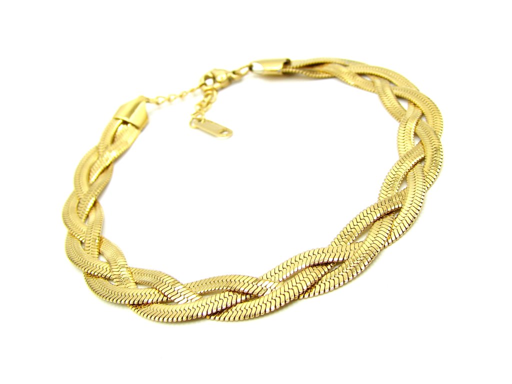 Náramek PLETENÝ z Chirurgické oceli GOLD NR250174 dárkové balení zdarma