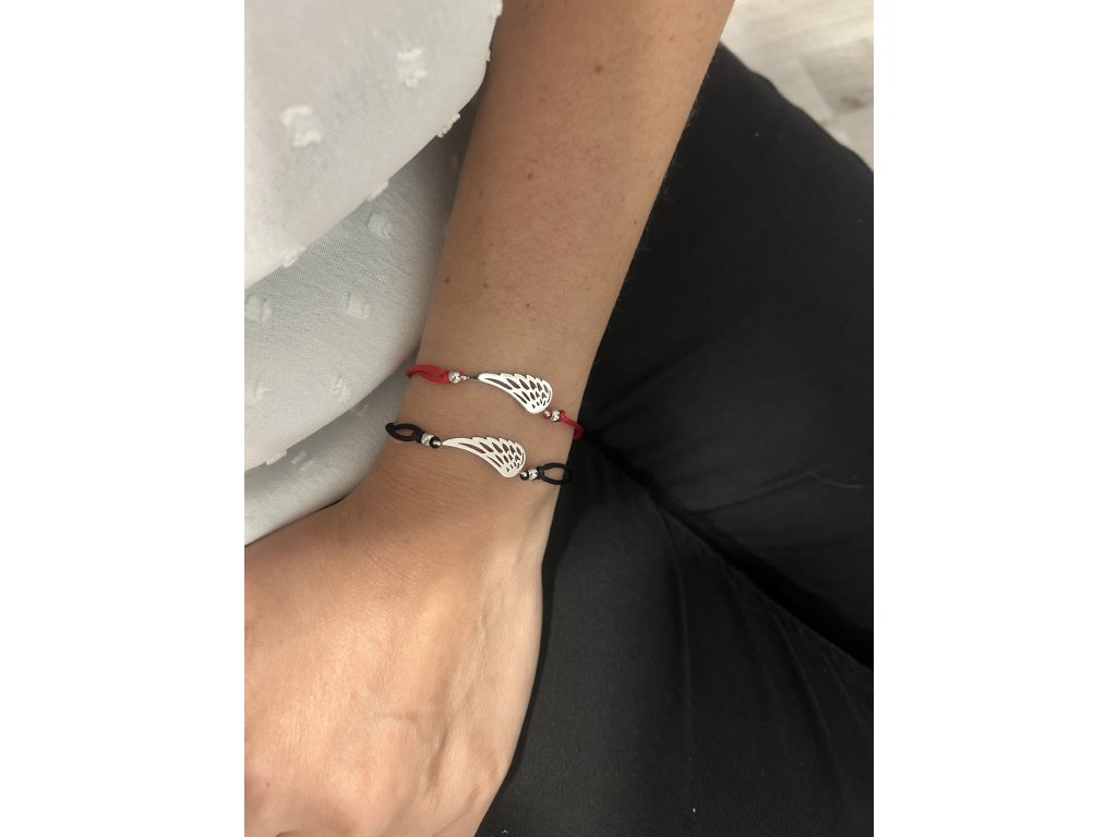 Materiál - chirurgická ocel. Materiál - chirurgická ocel - hypoalergenní (mohou ho nosit i lidé s alergií na bižuterii nebo stříbro). Náramek je vytvořen z materiálu, který je známý pro svou odolnost. Náramek z chirurgické oceli je hypoalergenní, tzn., že nevyvolává žádné alergické reakce. Náramek – chirurgická ocel je barevně stálá a nemění svoji barvu a je vysoce odolná vůči otěru a poškrábání. Šperk je vhodný na denní nošení. Náramek bez vsazených kamínků a jiných atributů náročnějších na péči a údržbu, je klasikou vhodnou pro každodenní nošení včetně kontaktu s vodou. Šňůrkové náramky jsou módním hitem. a dají se krásně kombinovat s jinými náramky. Můžete s nimi do vody a nemusíte je před koupáním sundávat. Délku vašeho náramku si zvolíte podle obvodu vašeho zápěstí. Délka nastavitelná cca 18 - 21,5 cm Andělské křídlo je z chirurgické oceli. Zapínání - karabinka.