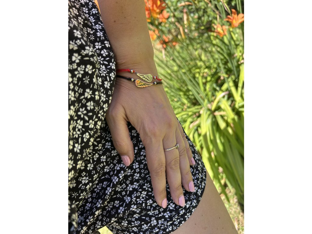 Šňůrkový červený náramek křídlo z chirurgické oceli NR231036