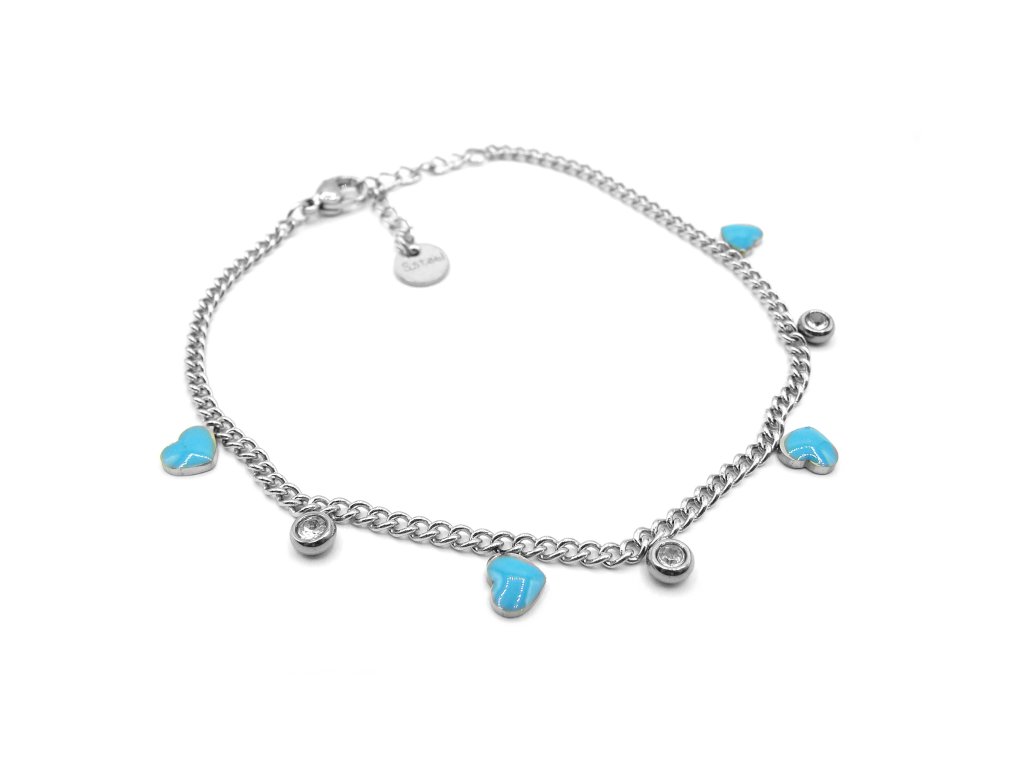 Jemný náramek tyrkysové srdce z chirurgické oceli NR250135