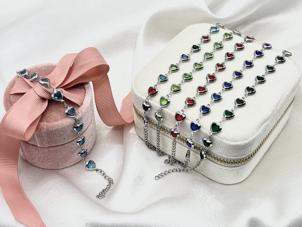 Dámský jemný náramek z chirurgické oceli - srdce zelené – jemný detail, který vydrží