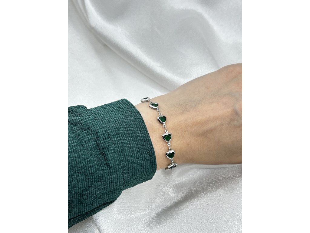 Krásný jemný náramek tmavě zelené srdce z chirurgické oceli NR250229