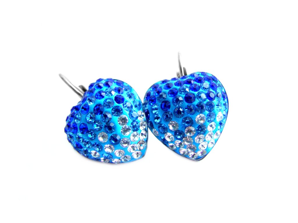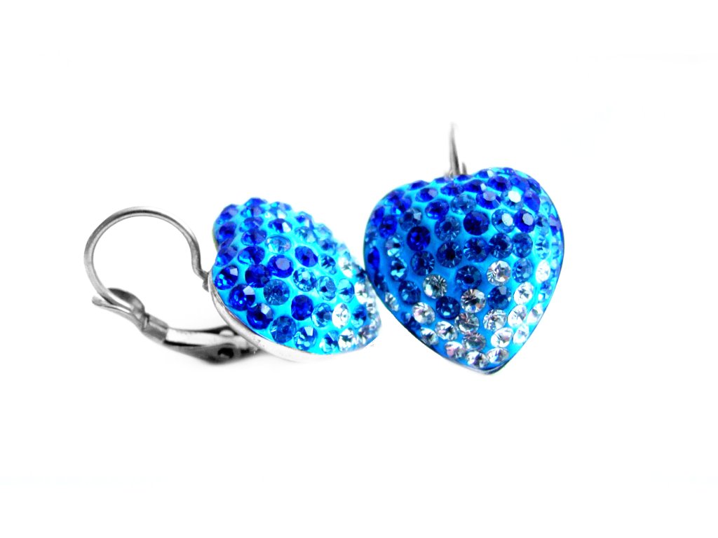 Náušnice - srdce o průměru cca 16 mm, délka včetně závěsu cca 24 mm.