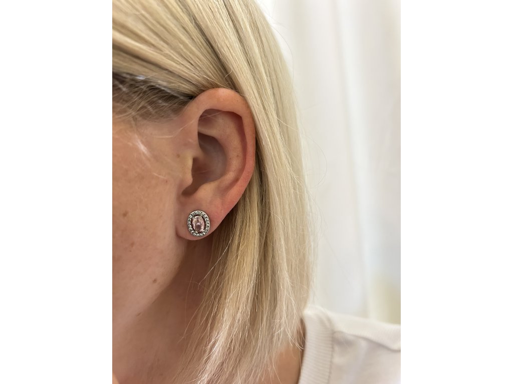 Krásné elegantní náušnice z chirurgické oceli s růžovým krystalkem NS240120