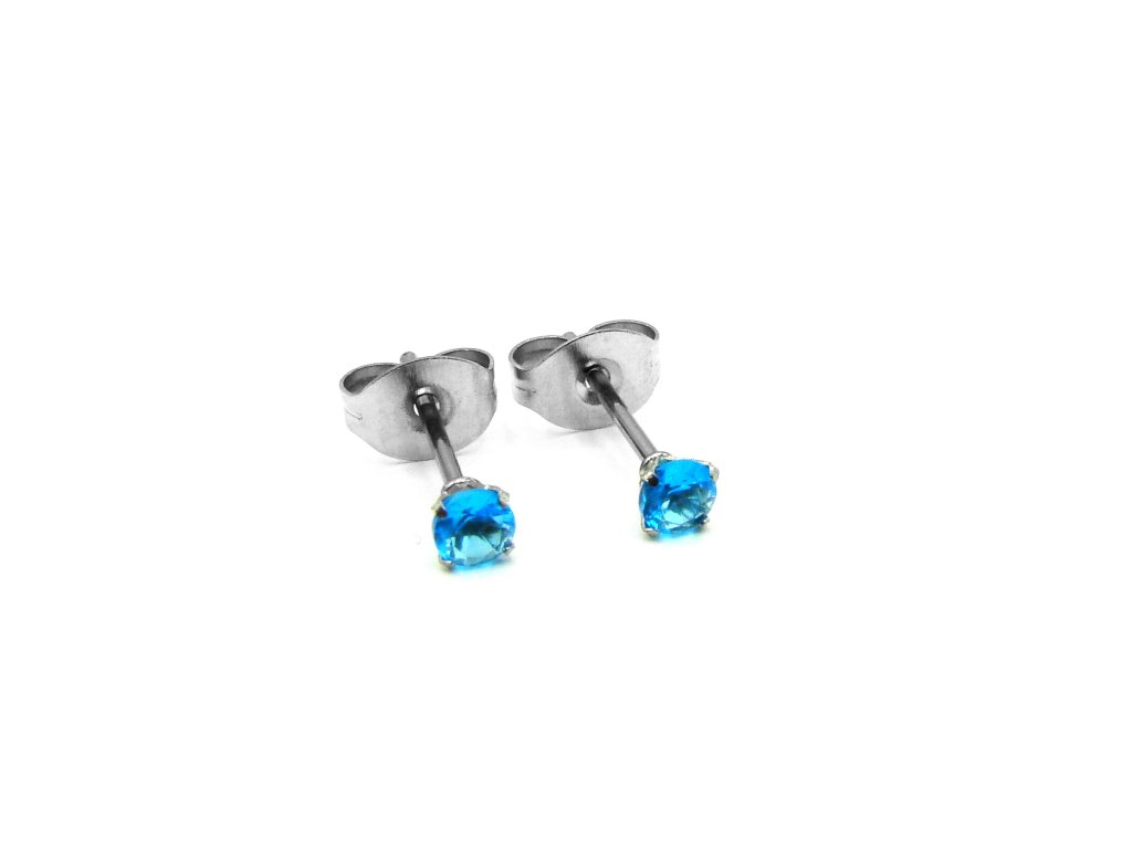 Náušnice z Chirurgické oceli s kamínkem 0,3 cm tyrkysové dárkové balení zdarma