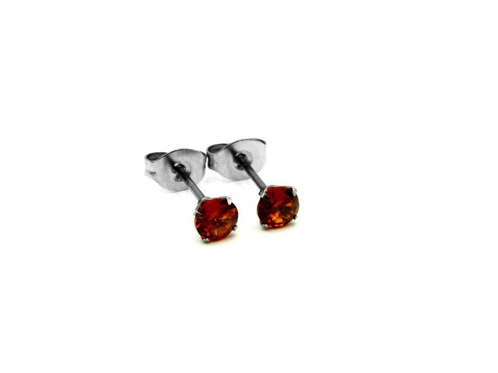 Náušnice z Chirurgické oceli s kamínkem 0,4 cm červené dárkové balení zdarma