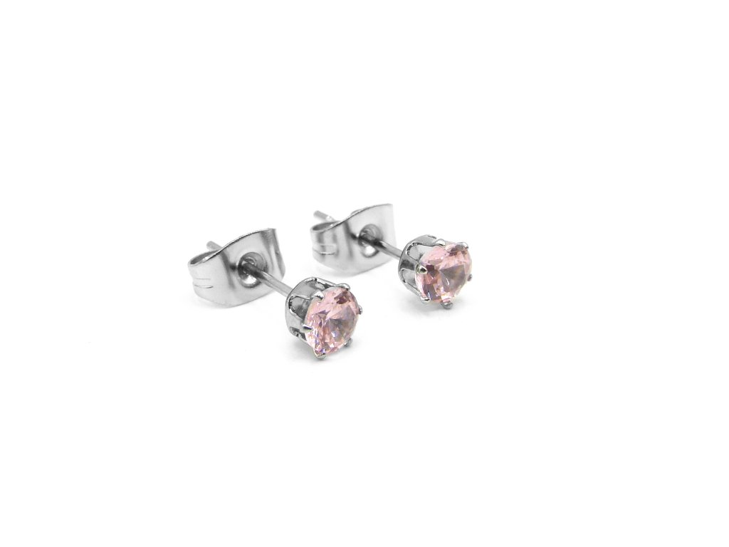 Náušnice z Chirurgické oceli s kamínkem 0,4 cm růžové dárkové balení zdarma