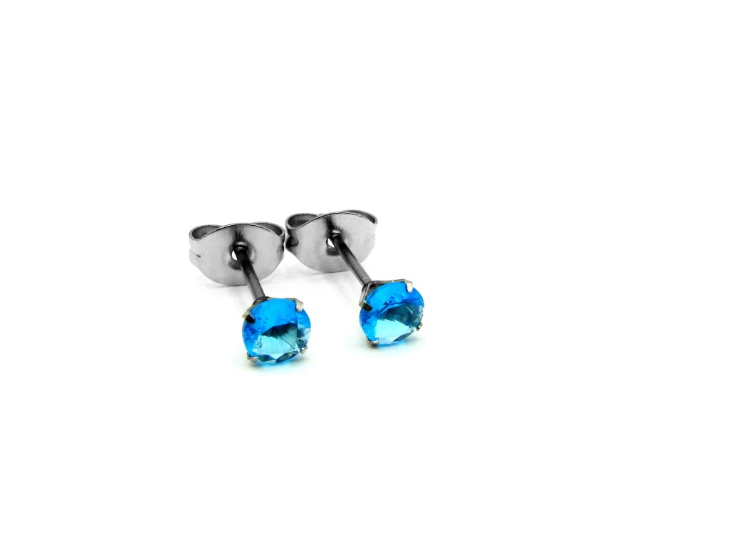 Náušnice z Chirurgické oceli s kamínkem 0,4 cm tyrkysové dárkové balení zdarma