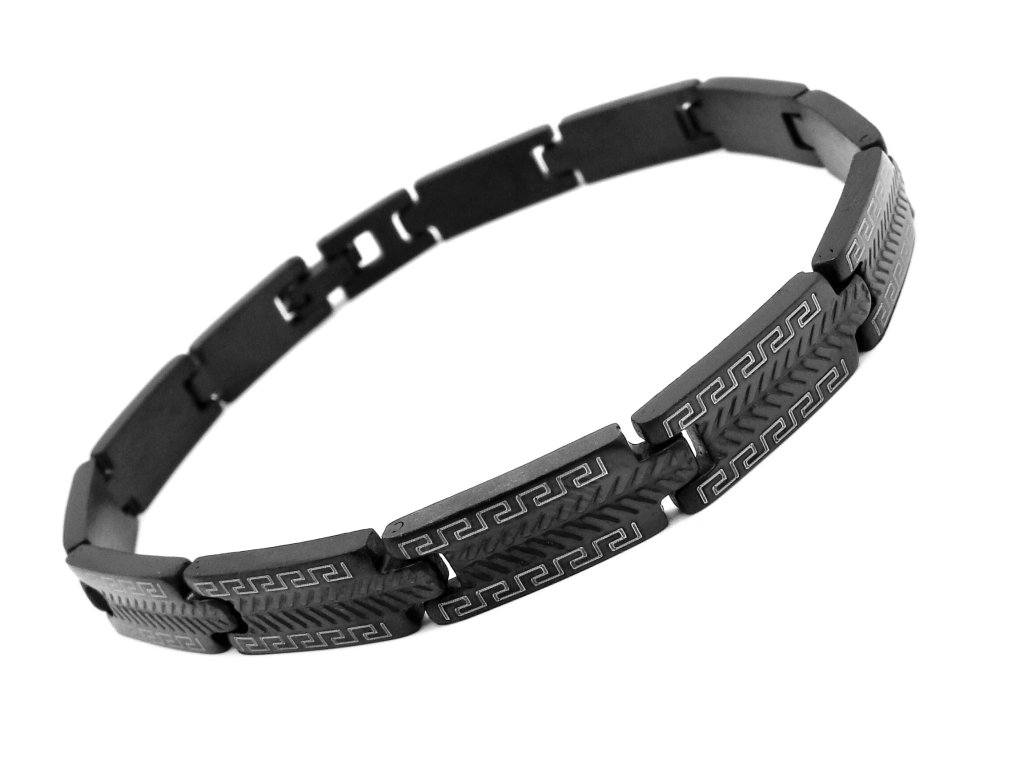 Krásný černý pánský náramek z chirurgické oceli - viz foto.