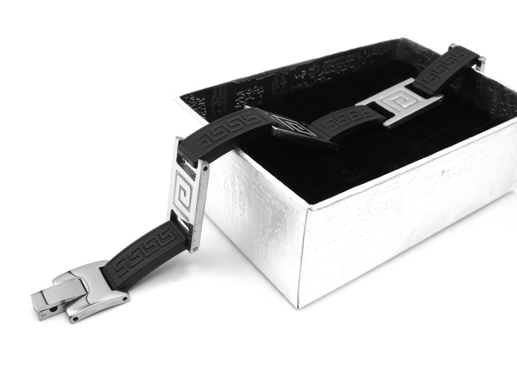 Tento pánský náramek s elegantním motivem z chirurgické oceli a kombinací kaučuku je ideální volbou – krásný na pohled, příjemný na nošení a skvělý i pro citlivou pokožku.