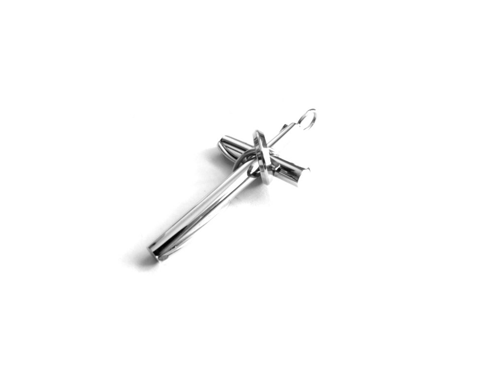 Krásný přívěsek z chirurgické oceli ve tvaru kříže s kroužkem - viz foto.