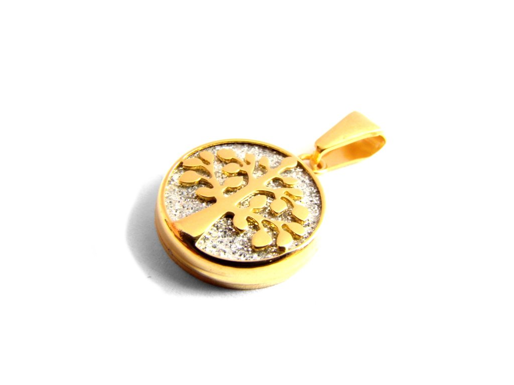 Strom života z chirurgické oceli a povrchově zlacený o průměru cca 18 mm.