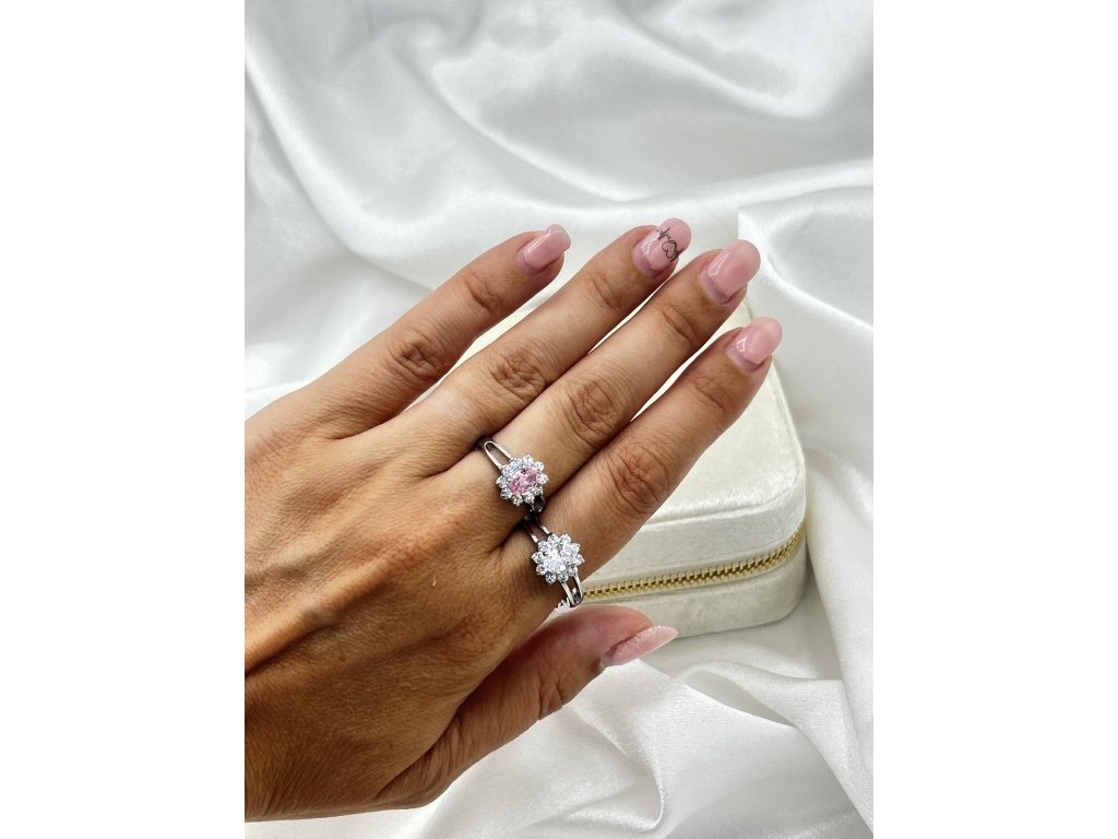Prsten zásnubní s bílým krystalem z chirurgické oceli RI240152