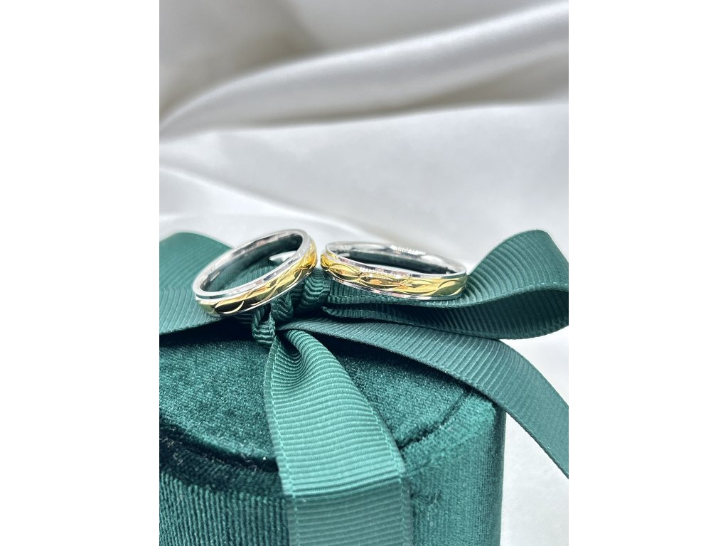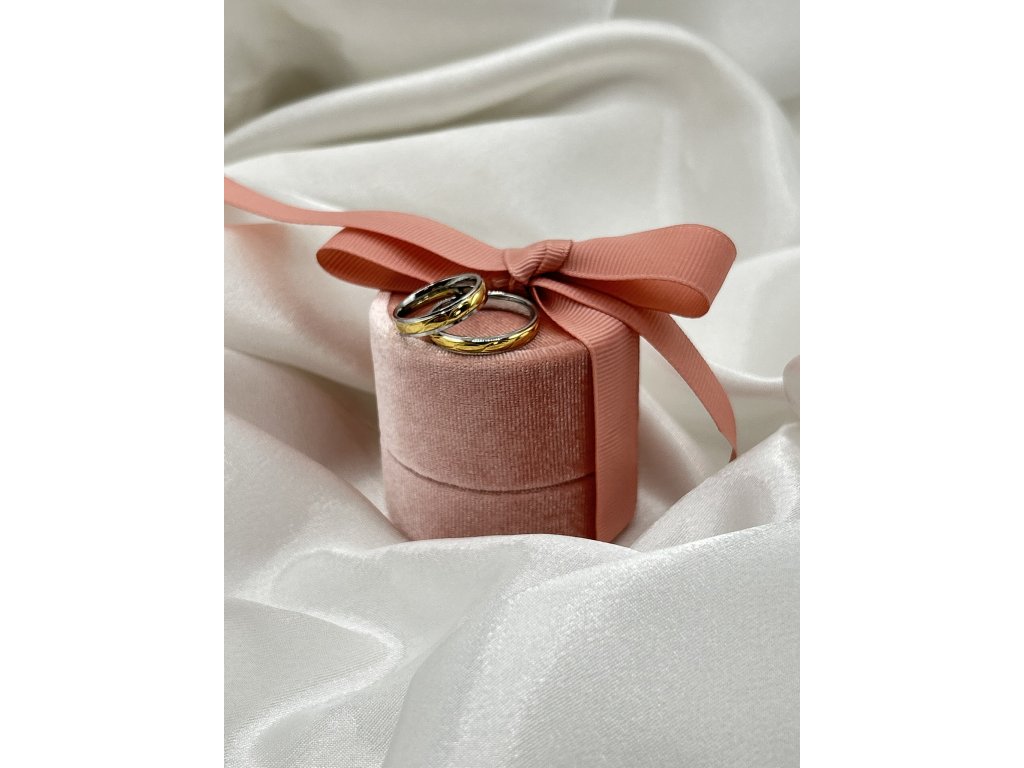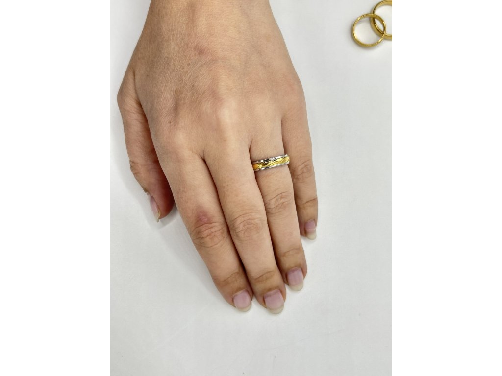 Krásný prsten - unisex z chirurgické oceli, možno použít jako snubní nebo partnerský, šíře cca 4 mm, rytí - viz foto. Barva - stříbrná a zlatá.