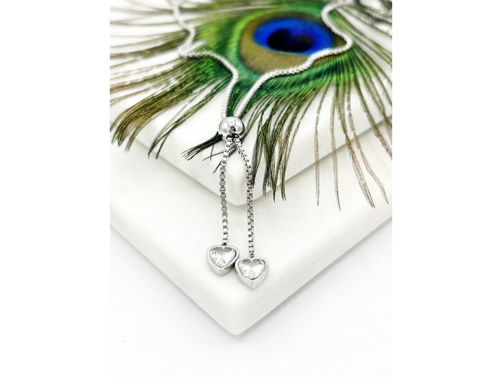 Délka náhrdelníku nastavitelná - cca 40 - 45 cm, uprostřed kulička se dvěma řetízky a srdíčky na konci - viz foto