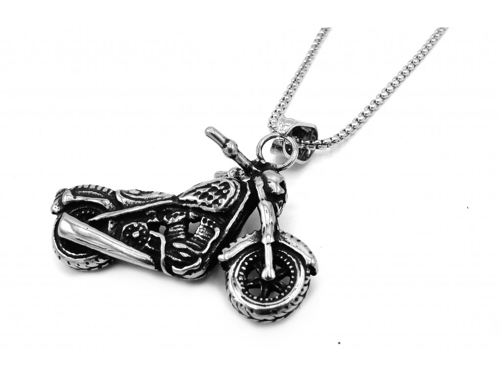 řetízek a přívěsek - chirurgická ocel - motorka s lebkou - 231054 dárkové balení zdarma