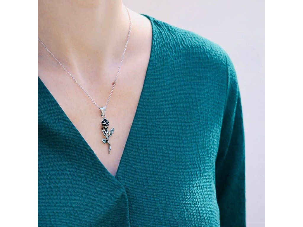 řetízek a přívěsek - chirurgická ocel - růže - 220213 dárkové balení zdarma