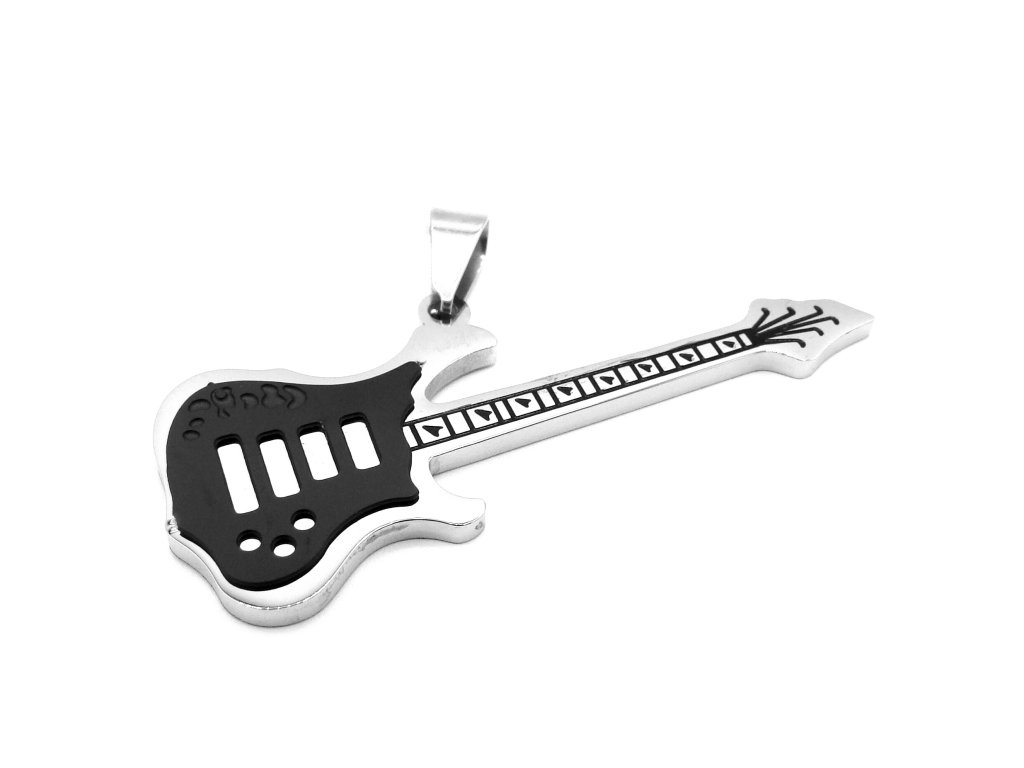 Krásný řetízek a přívěsek z chirurgické oceli - kytara z chirurgické oceli o průměru cca 47 x 18 mm, délka řetízku cca 50 cm.