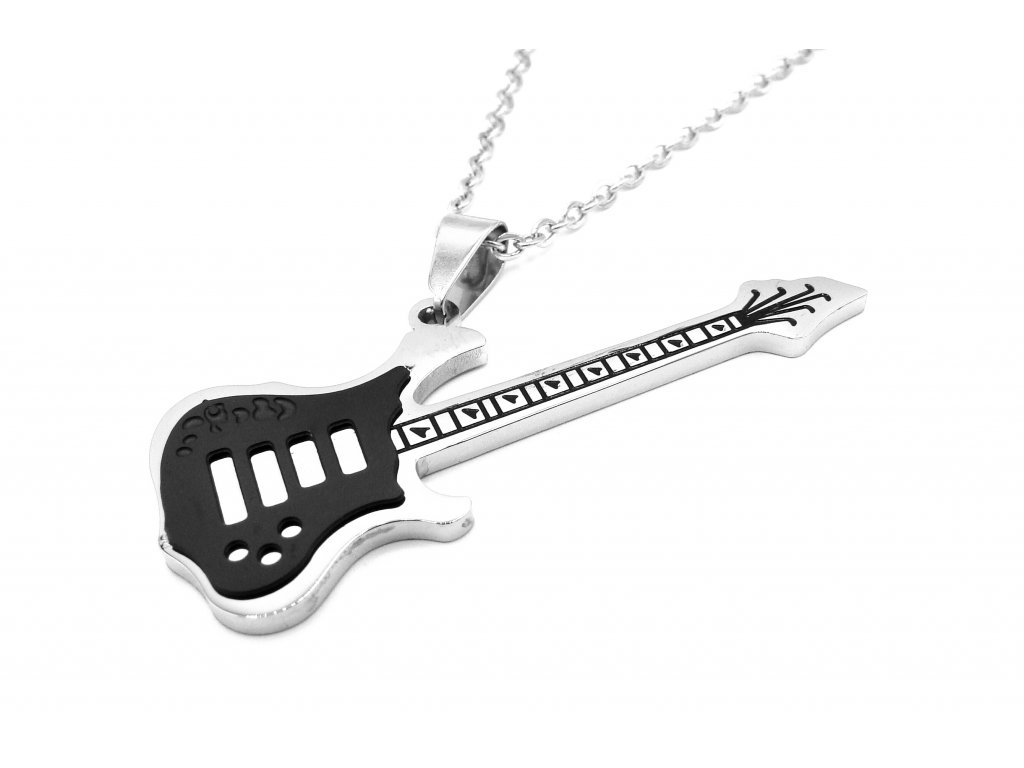 Řetízek a Přívěsek KYTARA černá Chirurgická ocel NH231203 dárkové balení zdarma