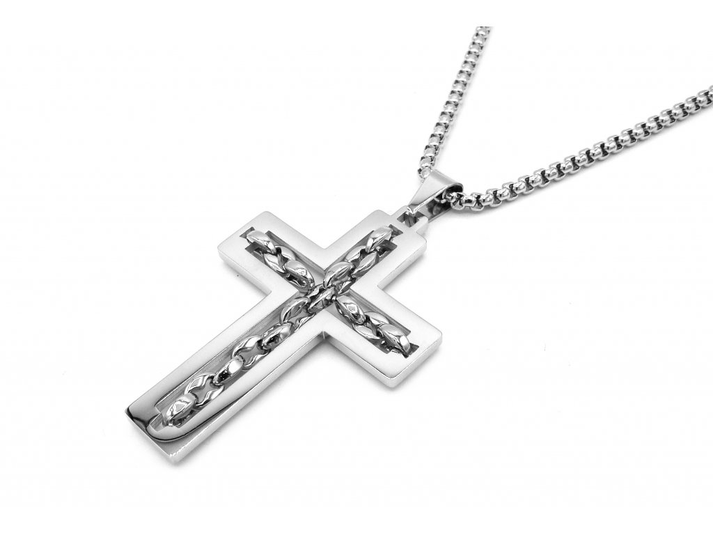 Krásný řetízek s přívěskem ve tvaru kříže z chirurgické oceli.