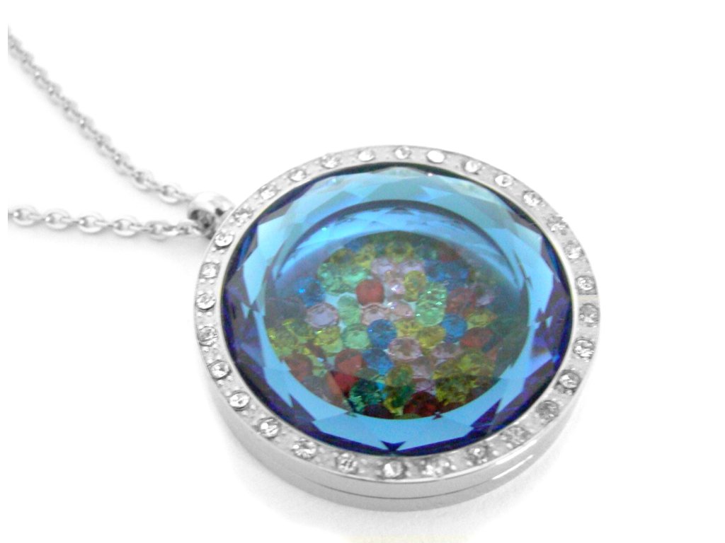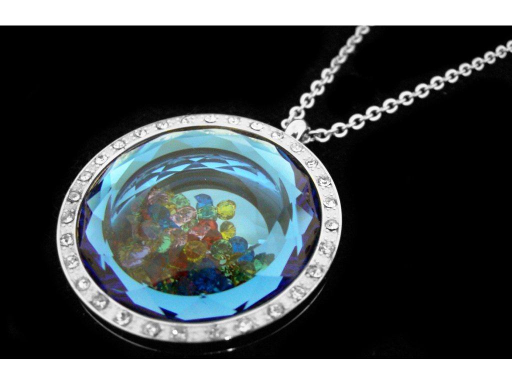 Krásný řetízek s přívěskem z chirurgické oceli. Uvnitř jsou volně vložené barevné křišťálky - viz foto.