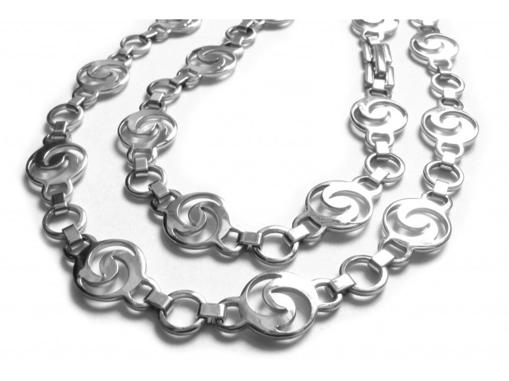 Nádherný řetízek (náhrdelník) a náramek z chirurgické oceli, Viz foto. Délka řetízku cca 50 cm, šířka cca 10 mm, délka náramku cca 20 cm a šíře 10 mm.