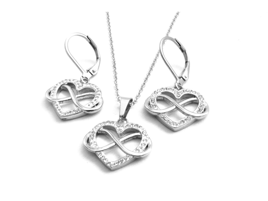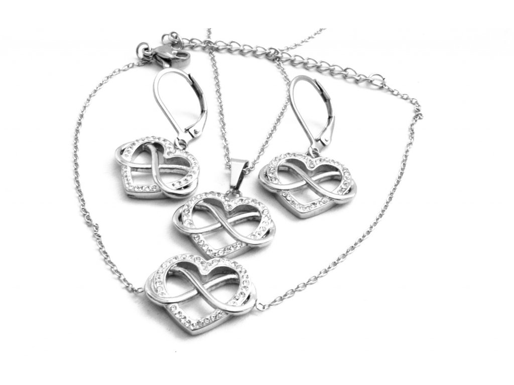Souprava Náhrdelník Náramek a Náušnice SRDCE a NEKONEČNO Chirurgická ocel SET180470 dárkové balení zdarma